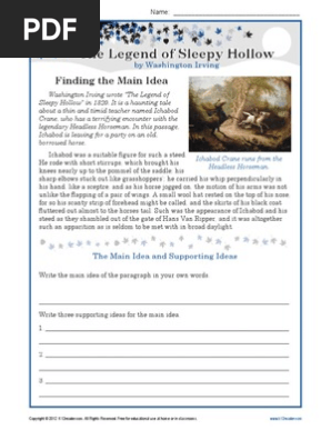 Middle School Main Idea Worksheet About The Legend Of Sleepy Hollow